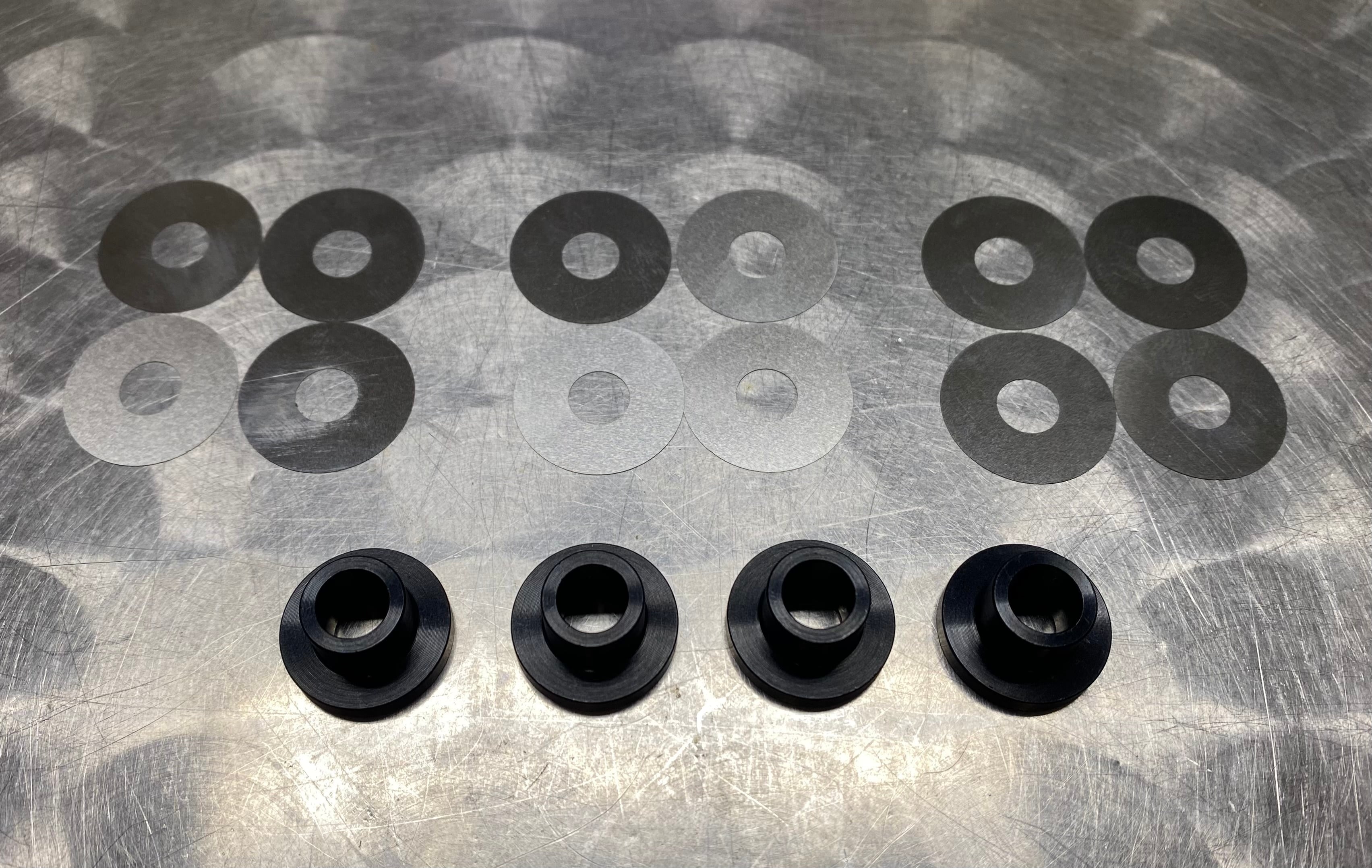 と同時にスーパーナウ様のZC33S用スタビブッシュ&ブラケットセットを取付する際にブラケットセンター位置を出しやすいように位置出しカラーとスタビブラケットのクリアランス調整用シムがセットになります。